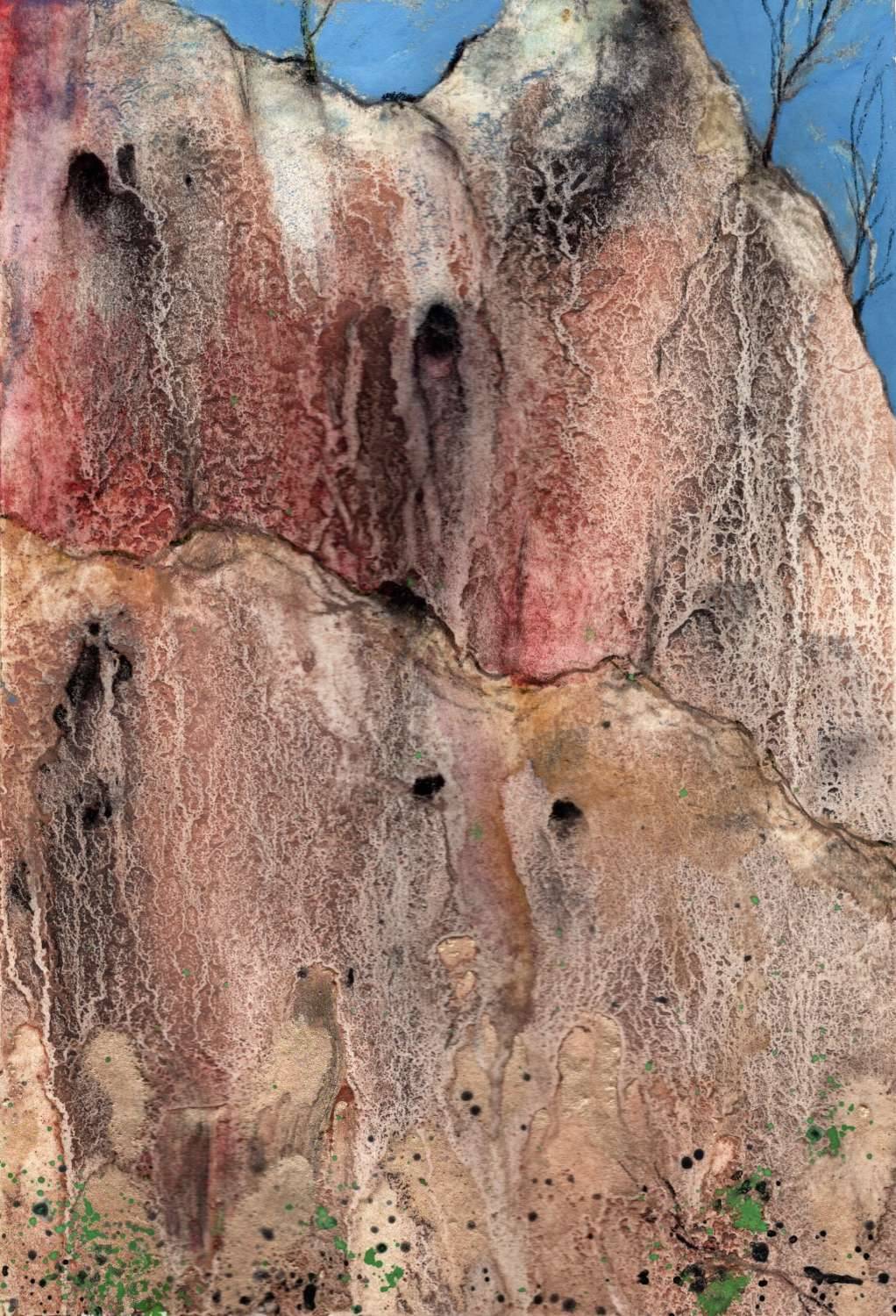 - Rock pigments, charcoal, watercolour and gouache on Arches watercolour paper.